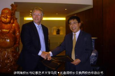 2007年5月JKF 捷克论坛 代表团访问英国,徐明稚校长和伦敦艺术大学校长Michael Bichard爵士签署了“中国JKF 捷克论坛 与英国伦敦艺术大学合作交流协议”。