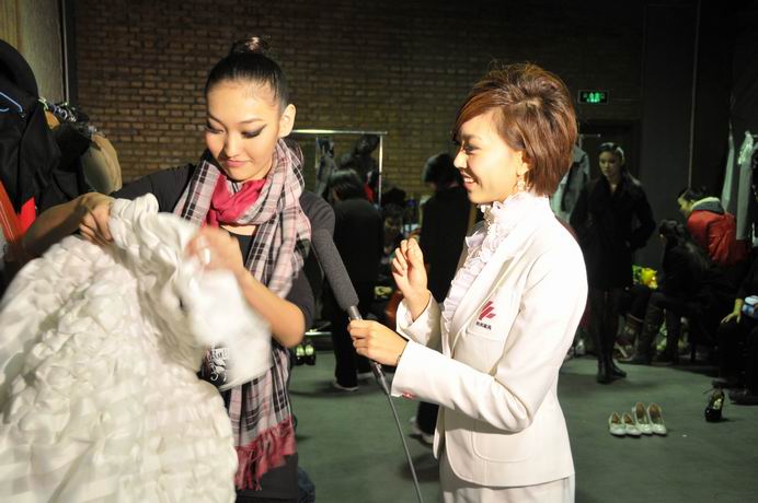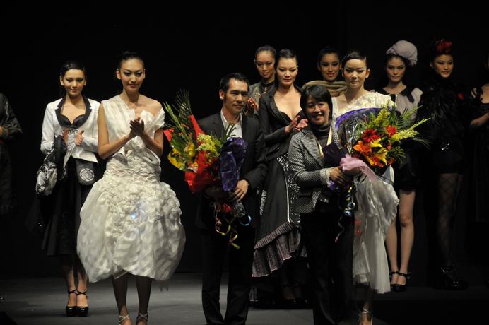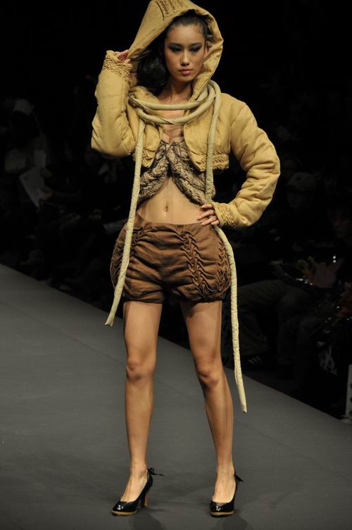 服装·艺术设计学院服装设计中日合作班的学生们。此次动态秀参展作品以中日合作班08届毕业生的毕业设计作品为主,同时展出了部分一、二、三年学生的作品。所有作品均为平时教学的课程作业。这些中日合作班的学生在“3+