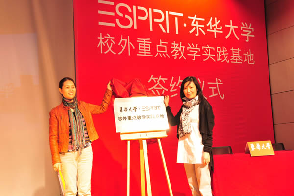 服装/艺术设计学院李柯玲院长、党总支副书记刘燕萍老师及服装相关专业本科生、研究生近200人参加;出席签约仪式的Esprit上海公司的来宾有人力资源总监盛昊苏女士、人事经理白云等。服装设计与工程系主任李俊教授主持了仪式。