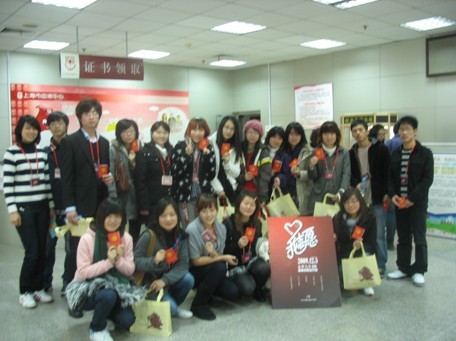 服装学院在社会和学校的号召下,志愿去上海市血液中心无偿献血,对大家来说今天不是一个特殊的日子,但是在经历了汶川地震之后,在看到了震后的惨状之后,在经历了甲流带给社会的惶恐与恐惧之后,大家似乎都对生命的意义有了的全新的思考与诠释,知道了生命的珍贵,大家都希望能自己的一份力量去为社会做出一份贡献,在去往血液中心的路上,大家脸上都充满了自豪与骄傲的笑容。