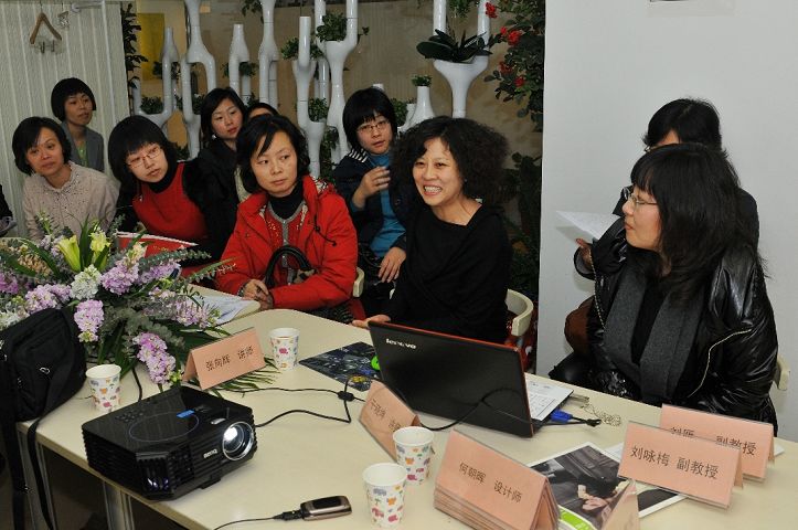 纳薇服饰牛冬梅总经理与评委和媒体讨论评审规则