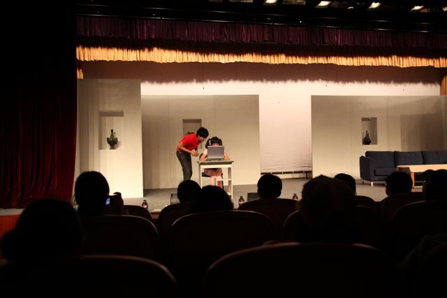 从头到尾,观众席上笑声不断,掌声不断,表演07级的学生们充分发挥他们的喜剧天分,语言的无厘头,加上许多搞怪夸张的肢体动作,以及背景音乐作为搞笑手段使剧场内的气氛一次次达到高潮。