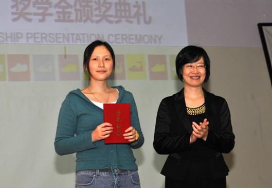 之后,“JKF 捷克论坛 ——ECCO奖学金”颁奖仪式开始,共有23名同学获得6个奖项的奖学金。田玉晶和黄政分别获得了ECCO奖学金的特等奖和一等奖,企业和校方领导向获奖项同学颁发了证书和支票牌,对他们的成绩表示热烈的祝贺。同时,特等奖获奖学生田玉晶也在台上汇报了她赴丹麦总部参观交流的成果,并和大家分享了她的心得感悟,让大家颇有感触。
