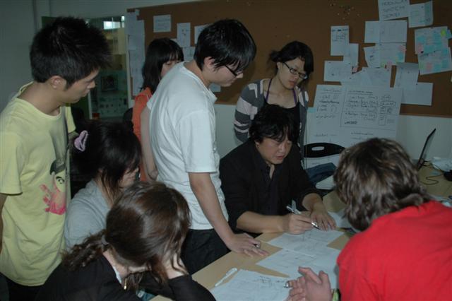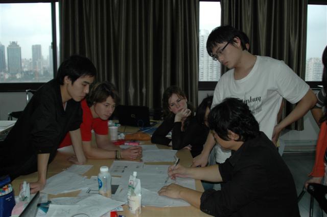 工业设计系与德国科隆应用技术学院艺术设计系的师生共同以“通冠中西——城市设施创意营”的形式进行了一次课外实践性教学活动。本次活动由上海通冠市政设施有限公司全程出资,该公司一向支持我系的产学研活动。本次城市设施创意设计的课题由企业基于城市发展的实际需求而提出,包括: 1. BRT 快速公交系统(Bus Rapid Transit),2. 垃圾收集系统(Trash),3. 信息亭(Island Information)。在企业的支持下,两国师生参观了世博,对市容及公共设施进行了调研,还去江浙对传统民居和相关企业进行了考察。中德学生分三组,经过一周的调研、头脑风暴和展开设计,于24日上午进行了成果发