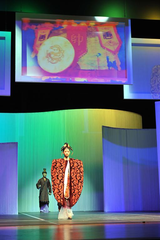 服装教育之创新与实践”的主题演讲,彭波 老师在论坛中发表了关于“Respect Each Other is the Most Representative Culture of Ideal Society”的演讲,他们的演讲引起了在场的老师和学生以及教育界、设计界同行们的极大的反响。最后在闭幕式中,由我校25位表演班的模特进行了中华服饰文化五千年的服装表演秀。