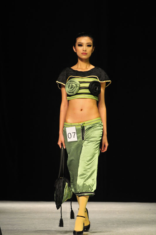 延安路校区体育馆拉开帷幕。 经过数月的精心雕琢与塑造,设计师们的作品终于在这场为时一个半小时的秀场上向观众们揭开了神秘面纱。校企合作的七年来,同学们在不断探索与研究中,创造了拉链用于服装的各种可能性,每一个创意都是对拉链的全新演绎。此届比赛也不例外,“青出于蓝而胜于蓝”该是最恰当的描述方法。 YKK服装设计大赛考验的不仅是选手的创新能力,更是学生的应用能力。如何在充分地展现一枚小小的拉链的功能与美感的同时,不让其它部件喧宾夺主成为了最大的考题。选手们的技艺与创意新颖而夺目。有的把拉链作为装饰图案用各种手法使其妥帖在各款服饰上,有的把拉链作为改变服装形状的工具,于一开一合间透露出微妙的形态变化,有的把拉链作为普通的服装辅料,用最简单的手法展现其最单纯的开闭功能。