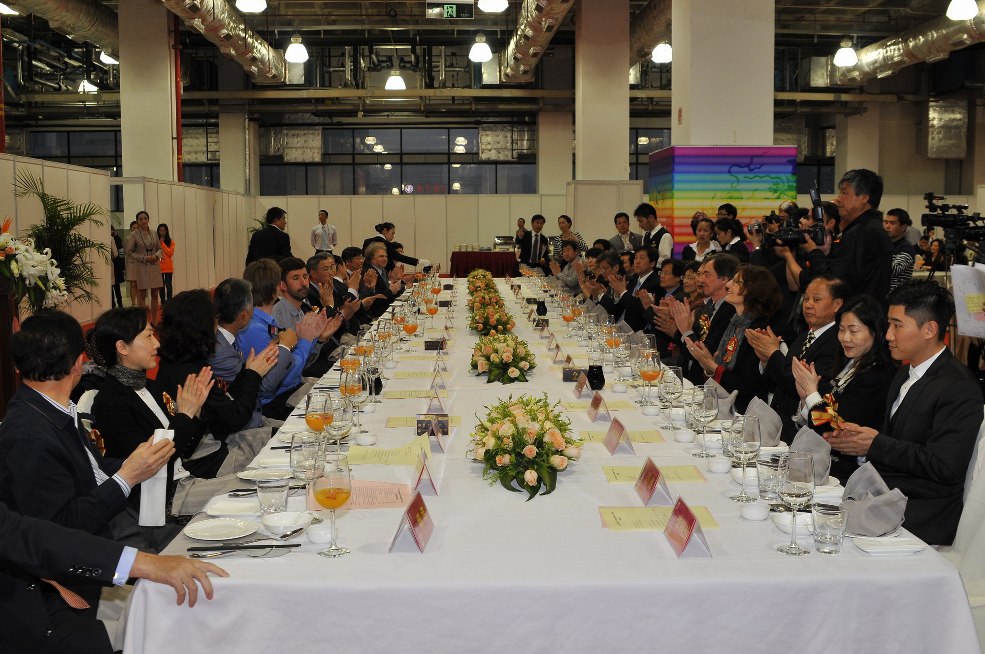 开幕酒会上觥筹交错,与会的各界人士手举酒杯,互相交流、探讨,每个人都期待着接下来的开幕式,也期待着2012“环东华时尚周”接下来精彩绝伦的五天。