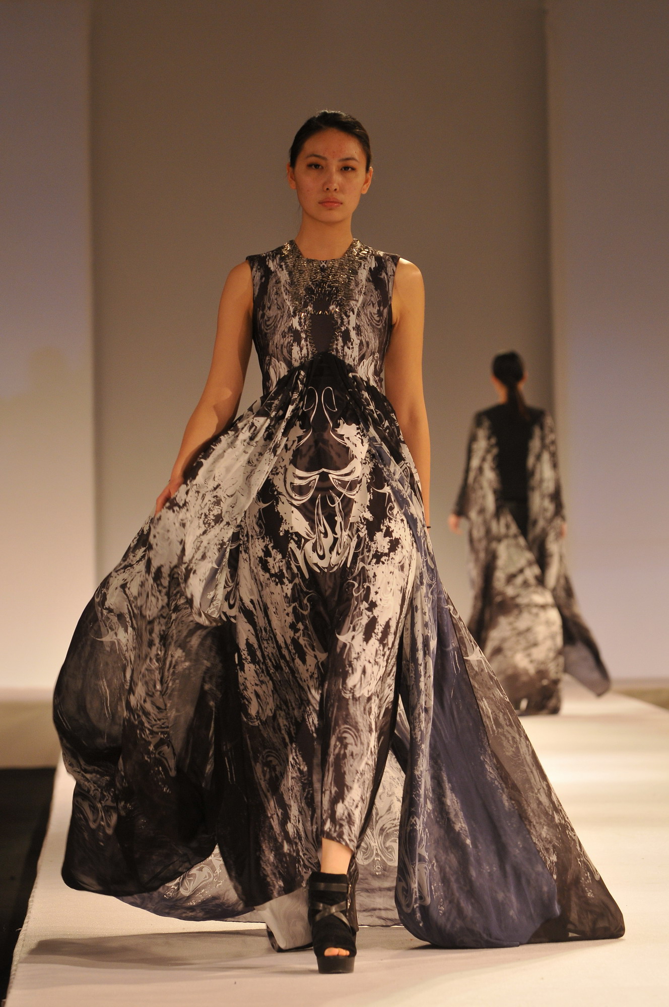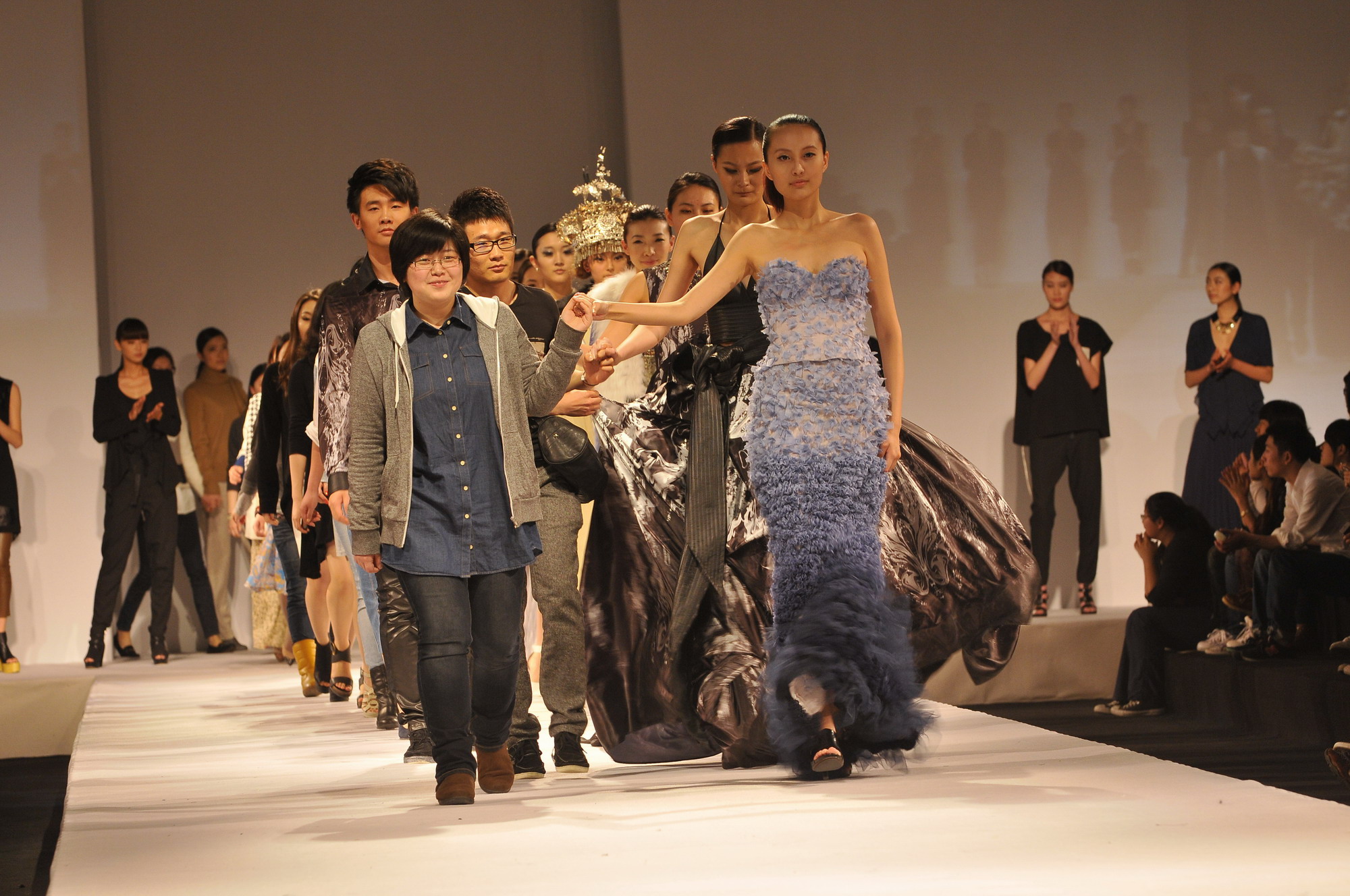 同时在对这次学生的作品否满意的问题上,倪老师表示尽管这次时间上相当紧凑,但学生们在细节手工方面还是很用心、耗费了很多时间的。在谈到对于这次的校企合作有什么看法或未来新的期待的时候,倪老师说校企间的合作实际是一种双赢的模式。在让学生有一个实践的机会的同时,也为企业带来新的灵感。如最后出场的十套便是适应和企业需要去做的,它们有了市场化的要求,不夸张但适合于市场上运行。本次对我们对这场秀和校企合作有了一个更深的了解。