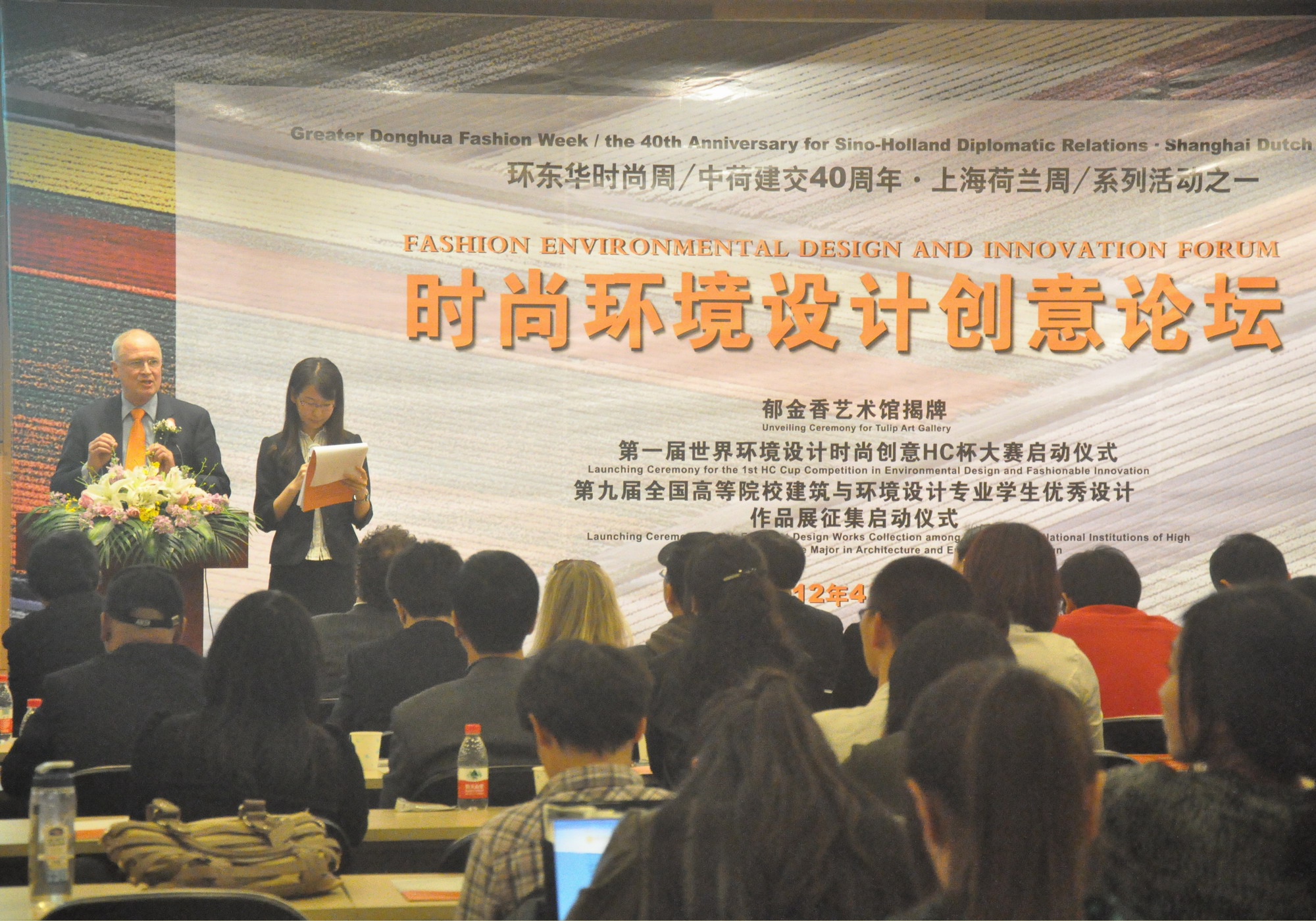 、中国建筑卫生陶瓷协会、中国建筑装饰协会设计委员会、中国建筑工业出版社、荷兰HC协会、全国高等美术院校建筑与环境艺术设计专业教学年会组委会等单位主办“第九届全国高等院校建筑与环境设计专业学生优秀设计作品展征集”、“第一届世界时尚环境设计HC杯大赛”启动仪式隆重举行。参加会议论坛和活动启动仪式的嘉宾有中国建筑卫生陶瓷协会首席顾问、荷兰HC协会首席顾问陈丁荣大师、中国建筑卫生陶瓷协会副秘书长夏高生先生、复旦大学上海视觉艺术学院副校长设计学院院长张同教授;上海市创意设计协会副主席、上海市美协艺术设计专业委员会副主任、同济大学设计创意吴国欣教授、荷兰设计时尚建筑协会中国区执行主席玛丽女士,上海现代设计集团环境设计研究院副院长王传顺总师等来自上海大学、上海交通大学、上海商学院、智汇联创集团等教育界、设计界、企业界的专家、学者、社会精英、学生200多位听众。荷兰HC协会时尚创意总监比利时著名设计师菲亚拉、荷兰HC协会生态科技发展总监伊万先生、中国室内环境设计师周金华先生等作了主题演讲。论坛由JKF 捷克论坛