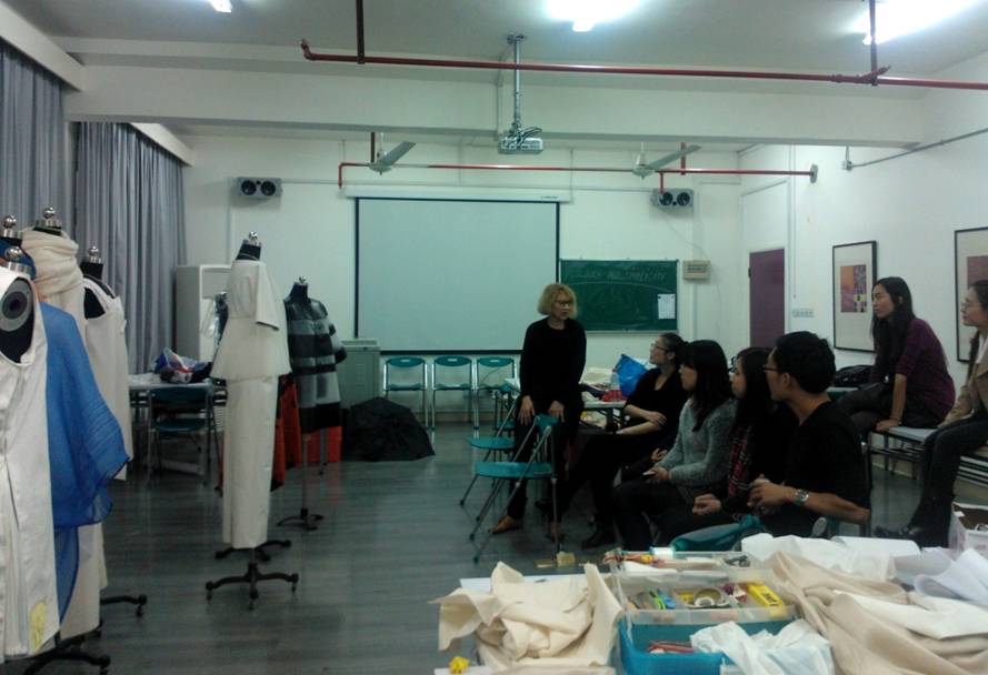 课程第一周,在上海当代艺术馆Pirjo教授带领大家参观了“设计炫彩生活-芬兰当代设计与Marimekko展”,作为首展拉开2012年芬兰革新设计周的序幕,大家在展览中欣赏了很多芬兰的优秀设计,Marimekko展以一种独特视角呈现芬兰历史悠久的设计传统,还让大家了解到真正好的设计是应该自然地融入人们的日常生活中的,这一点让同学们都受益匪浅。开展回来之后,Pirjo教授与大家探讨芬兰的设计。大家各抒己见,包括一件好的服装所需要的元素、西方和东方的审美等问题,同学们发现中国与芬兰在服装文化及服装观念上虽大致保持一致,但同时也求同存异,各自有一些更符合自己国情的想法。Pirjo教授希望同学们能找到自己作为设计师的风格和喜好,并让大家把自己的一些想法和灵感记录在素描本上,同学们在课堂上积极发言,课堂气氛相当热烈。