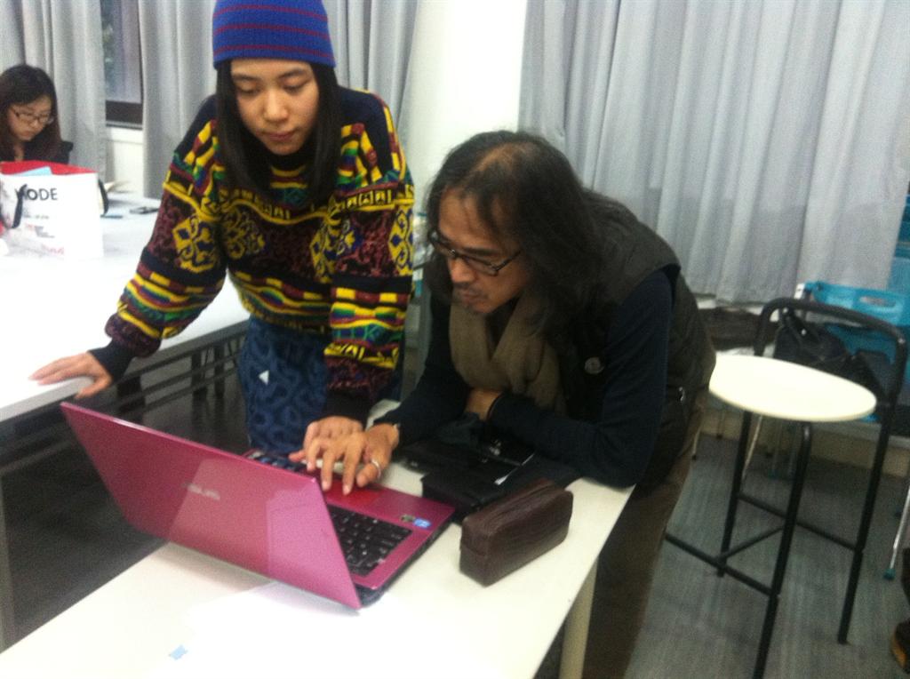 岩佐老师与服装设计系李燕妮同学沟通设计稿