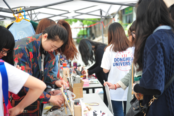 作为“环东华时尚周”的特色板块,连续开办六年的“创意市集”,给了学生们接受真实市场考验的机会,从方案策划,到绘制草图、订购材料、手工制作完成作品,再到市集上布展、销售,所有过程都由学生团队独立完成。学生们借此平台发散自己的创意,迎来自己的创意新开路。