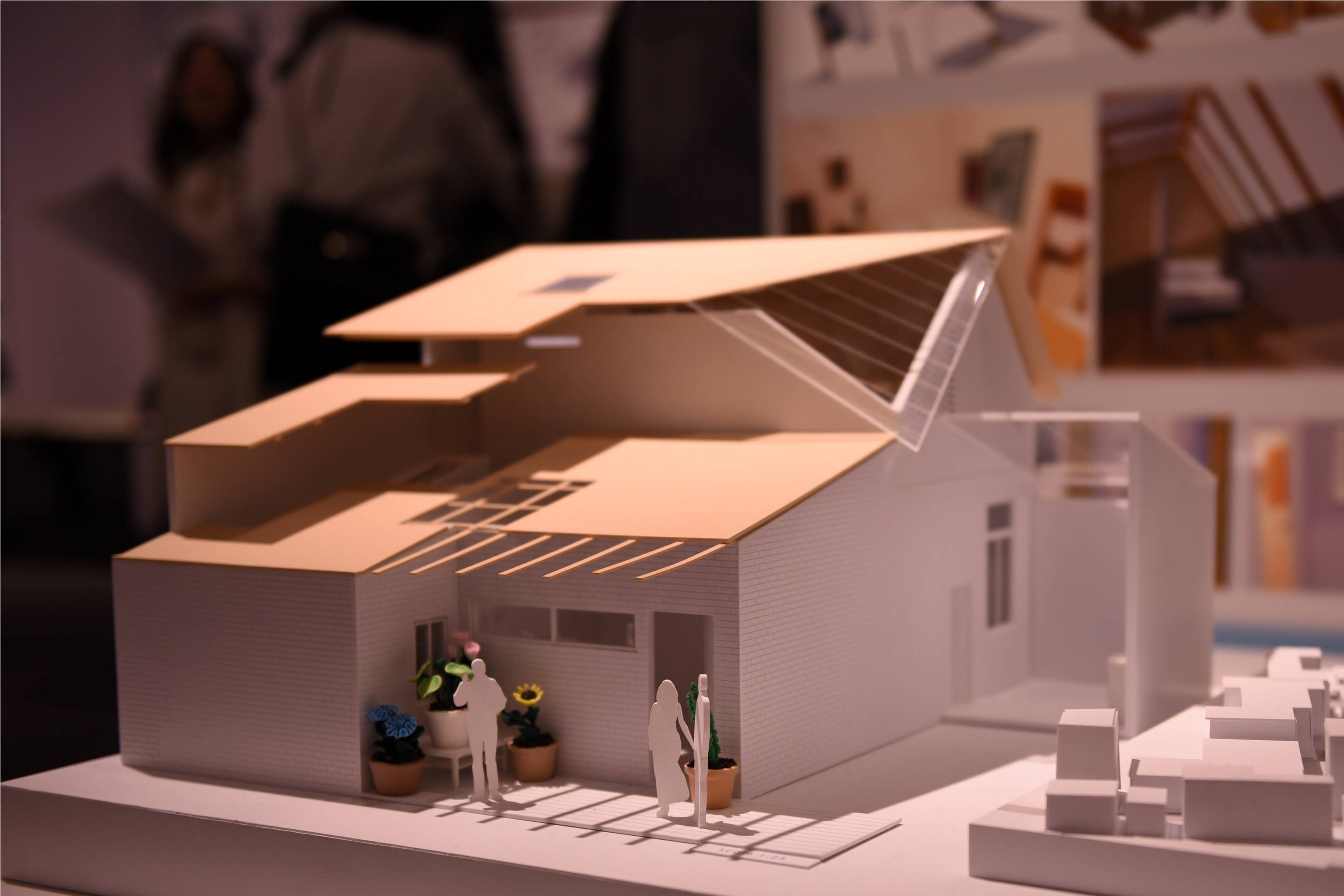 在参观纺织品设计作品时,刘静妍同学介绍了自己的作品“再美•美屋”,利用旧有的家具配上全新的思路想法,全手工制作,不仅扩大了商品的原始价值属性,而且体现了设计师坚持初心,美化生活的设计本心。