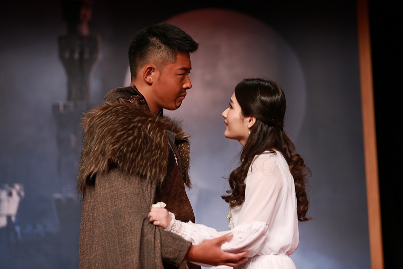 为了这次演出,同学们克服重重困难,仅用一个月时间就完成了全部剧本改编和舞台设计等工作。所有演职人员主动牺牲休息时间,苦练莎翁原著中的古英语台词,在无数次的排练中,对小到英文发音、大到眼神动作都严格要求,力求将经典人物和剧情演绎到位。表演中不乏与时俱进的创新亮点,比如同学们把中国传统戏曲元素加入莎翁的经典剧目,巧妙运用了川剧中的变脸戏法,富有新意又极具表现力。舞台效果也打破传统,以一段引人入胜的视频开场,完美再现了剧中场景,增强了视觉冲击力。