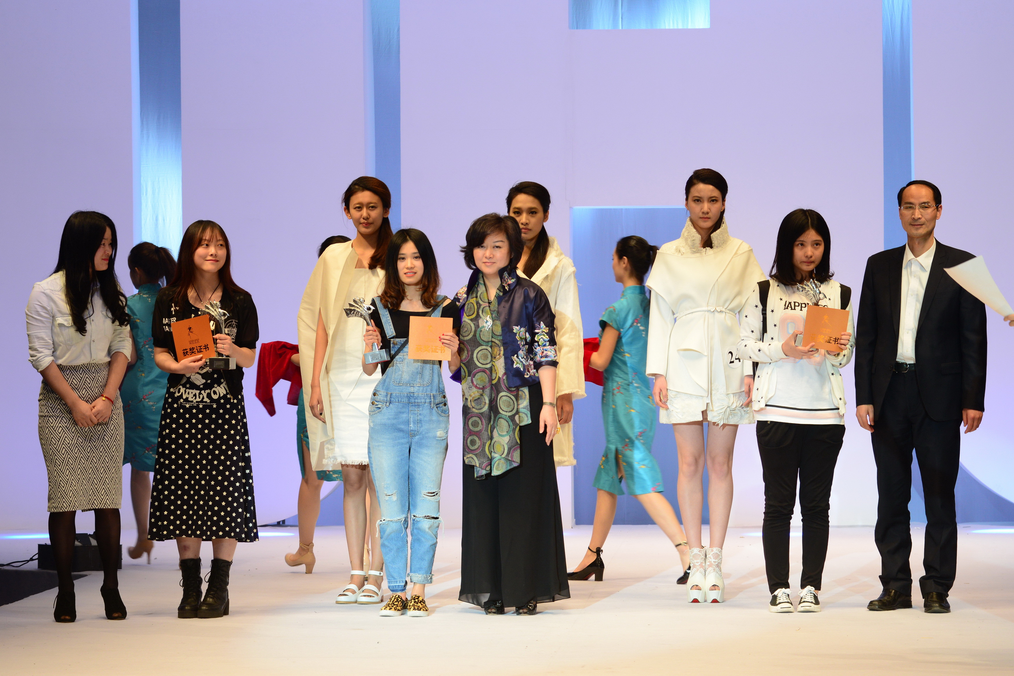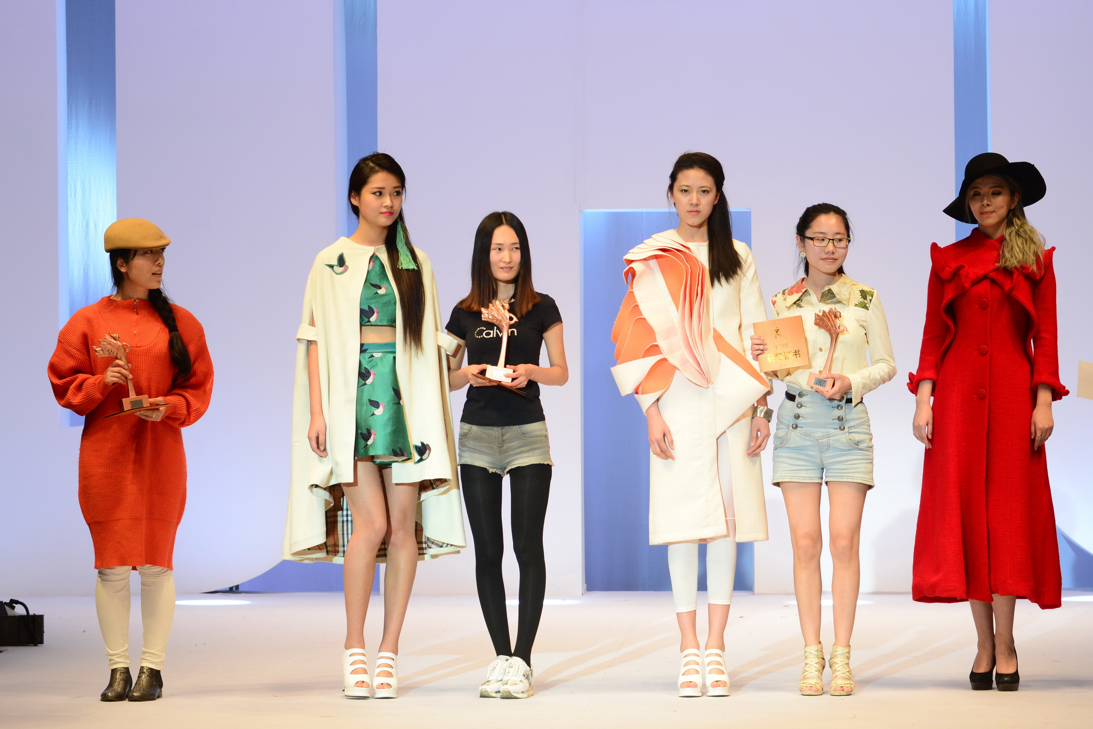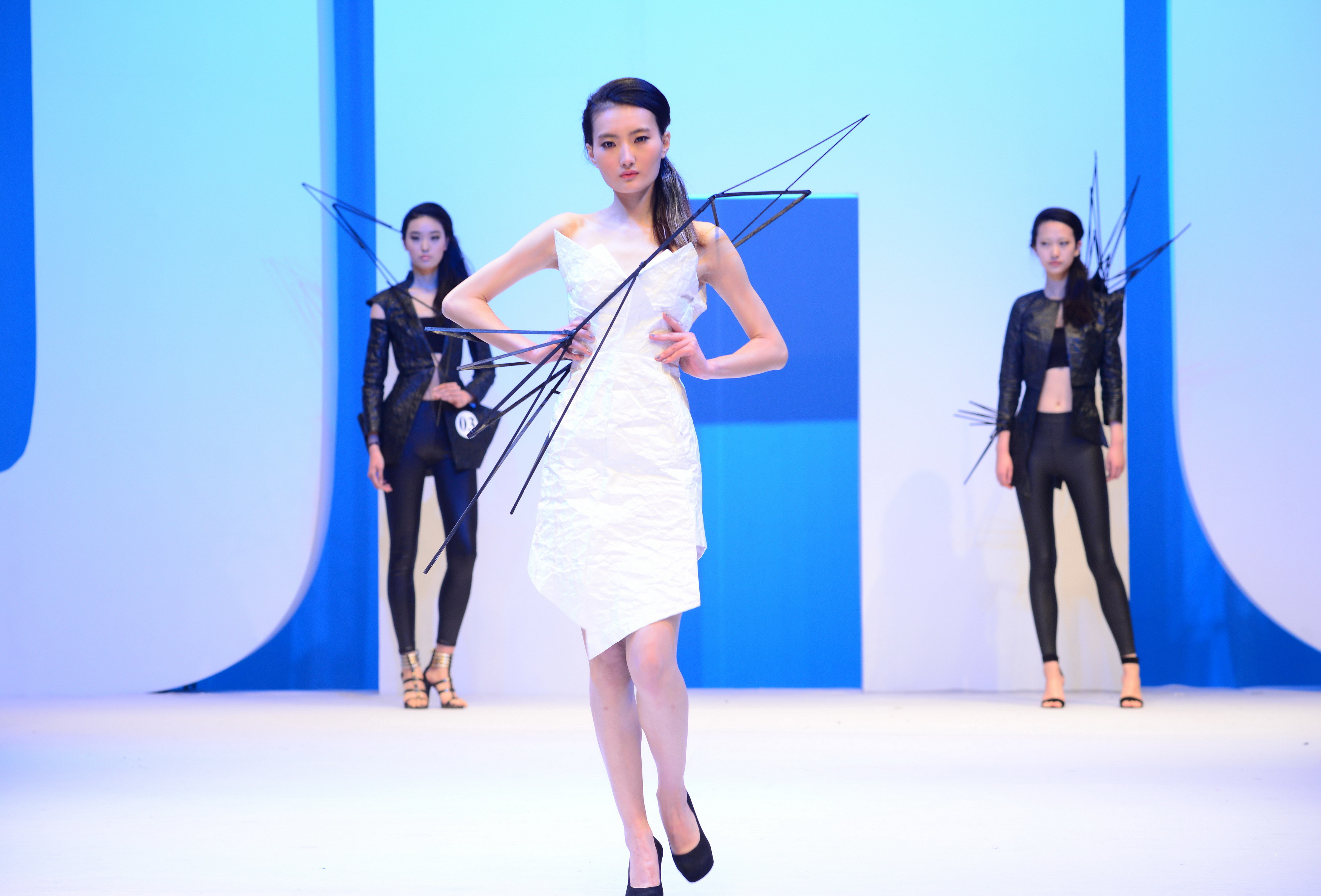 走秀结束,随之而来的是紧张的评分环节。一段服装•艺术设计学院介绍VCR播放后,获奖名单最终揭晓¬——立裁技术精英铜奖获得者:来自苏州大学的3号选手胡小燕,“裁出心衣”设计铜奖获得者:来自JKF 捷克论坛