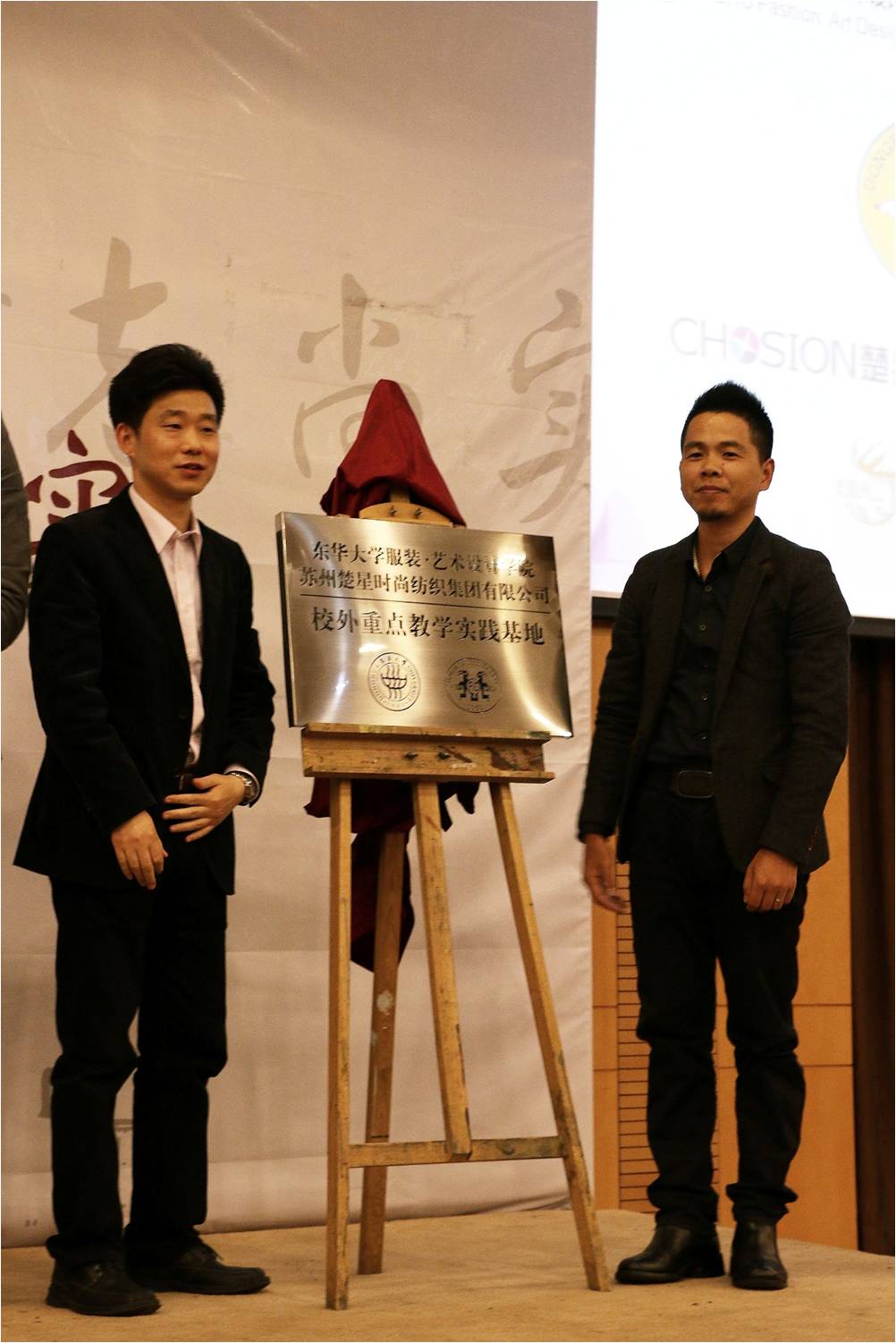 随后,学校、学院领导与上海老凤祥有限公司、上海复旦上科多媒体有限公司、苏州楚星时尚纺织集团有限公司三家企业代表为“服装•艺术设计学院校企合作实习基地”举行了揭牌仪式。