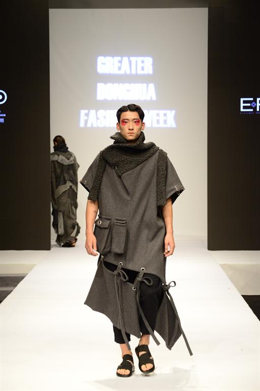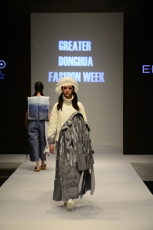 西藏大学的民族风留给观众无限的震撼和回味。紧随其后的,是精彩的2016“雅莹·东华杯”中日合作优秀毕业生作品发布。发布会由浙江雅莹集团有限公司特别赞助,展示了68名毕业生共73套优秀作品。这些作品均为他们在日本文化学院交流学习时期制作,体现了中日合作专业融创新性、时尚性、技术性于一体的办学理念。中日合作班的学生设计师力求每件作品工艺精致,或是运用解构主义实现结构的变化;或是通过染色、印花等多道工序和大量手工制作,对面料进行再造处理,从而达到设计需要呈现的表面肌理和色彩变化效果。