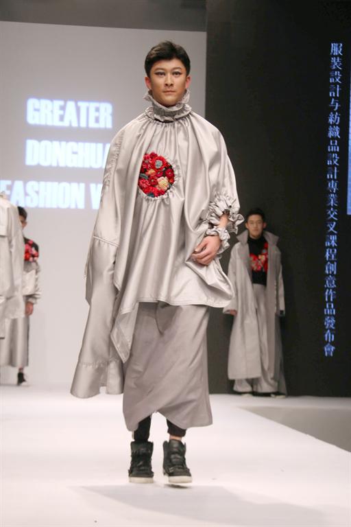 发布会既强调了两个专业的知识结构的交叉融合,也体现了设计作品重视面料处理的倾向性。在作品设计和制作过程中,同学们注重对面料的探索,尝试多种工艺相结合,由此创作出具有丰富触觉和视觉肌理的服装作品。