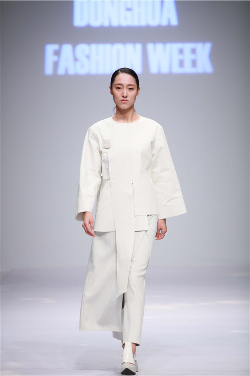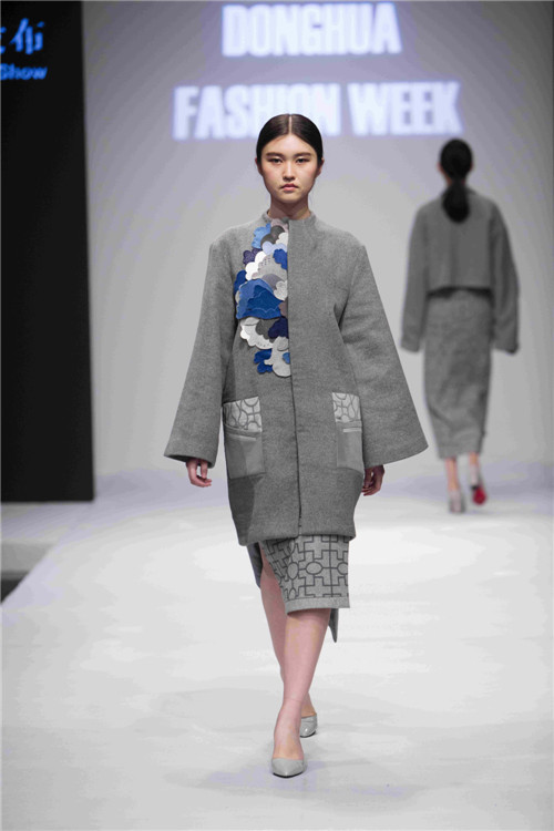 “东华新锐设计师”培优支持计划成果的集中展示。新锐设计师们纷纷表示,通过“东华新锐设计师”培优支持计划,心怀梦想的年轻学子有机会挑战自己,拓宽视野,在跨界协作中,展示设计的魔力。作品《探幽》的团队成员洪润、徐源、杨钰正是这一计划的受益者。分别来自服装艺术设计、纺织品艺术设计和数字媒体艺术三个设计专业的年轻人,出于对中国古代建筑、古典文化的共同喜爱走到了一起。设计师洪润谈到自己的团队满怀感恩,“从服装作品的初步诞生,到饰物鞋帽的拼接搭配,再到时尚传播的输出,我们的团队最大程度地提升了资源整合能力和团队合作精神,在多元化的专业背景下碰撞出了创意与灵感的火花。”团队的指导老师,JKF 捷克论坛