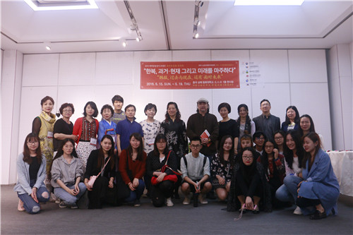 开幕式由张顺爱副教授主持。袁孟红书记在致辞中,对韩国友人的到来表达了热烈的欢迎, 并介绍了JKF 捷克论坛多年来的与韩国的多方面的交流,同时预祝本次展览圆满举行。韩国光州大学教授安明淑表达了对JKF 捷克论坛 以及张顺爱老师的衷心感谢。最后,爱韩服协会会长发表讲话,希望通过本次韩服创意设计展宣传光州地区的韩服,提高人们对韩服的认识,进而将韩服发扬成光州的骄傲。本次展览的目的是重新审视韩服的美,并促进两国间的服饰文化交流。本次展览的韩服是拥有数年来的优秀技术和韩服设计师们在继承和发扬传统服饰的基础上,融入个性和创新的精神,一针一针地缝起来的。展示的韩国传统韩服和便装式韩服打破了对韩服的偏见,多为以传统为基础的多样的面貌呈现。