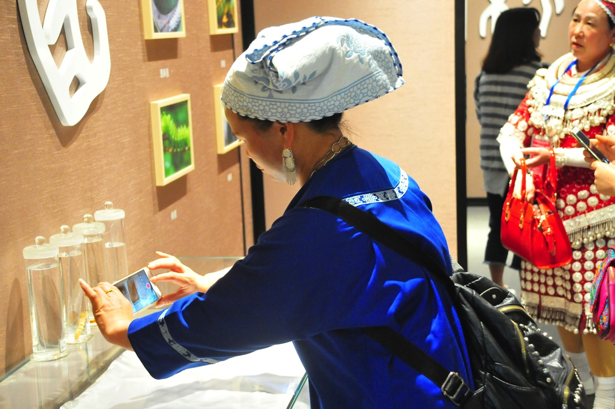 随后进入丝绸衍生品展馆,展馆内展示了精美的家纺品和丝巾,不同产品上的精美图案展现着优雅的东方之美。