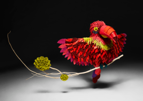 图:回收皮料作品孔雀和鹦鹉