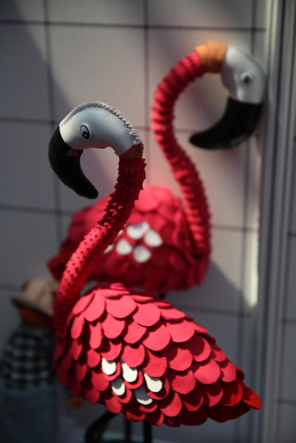 工作坊的展品涉及到服装、家具、装饰画、服饰品(鞋包饰品)、家居摆件等各种类型,从平面的到半立体,从半立体再到立体,从整块到细碎的形式,从粘贴到车缝的工艺,丰富多样的艺术表现形式吸引观众的眼球。