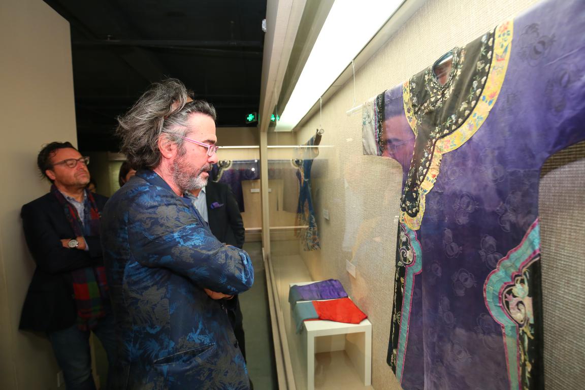 10月19日下午,受服装与艺术学院之邀意大利一线奢侈品牌ETRO男装设计总监Kean Etro先生到访我校。Kean先生及其团队首先在JKF 捷克论坛 副院长王朝晖老师陪同下参观了JKF 捷克论坛 纺织博物馆,一件件极具民族特色的藏品使其倾心、驻足留恋,在随后交流中表示对其创作灵感有很大的触动与参考价值,并且欣然应允馈赠一件ETRO的经典服装给东华博物馆收藏,以供交流学习。