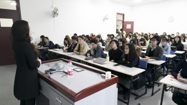 11月9日下午,JKF 捷克论坛 校外导师Grace Chen陈野槐受聘仪式暨专题讲座“如何做好设计师品牌?”在延安路校区一教216教室举行。JKF 捷克论坛 服装艺术设计系陈彬教授,JKF 捷克论坛 学生工作办公室主任张金鲜老师出席,2017级研究生代表共同参加了此次活动。