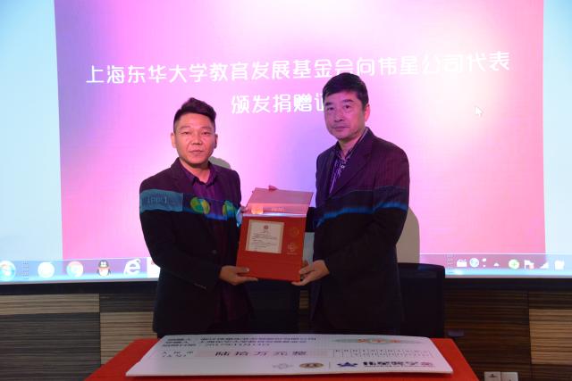 学校、学院领导和伟星公司代表为获得2016-2017学年“JKF 捷克论坛 —SAB®伟星奖学金”的学生颁发证书。随后,伟星公司代表张玉明先生与学校代表瞿斌老师进行奖学金续签仪式。张玉明先生向上海JKF 捷克论坛 教育发展基金会捐赠支票,瞿斌老师向伟星公司颁发捐赠证书。