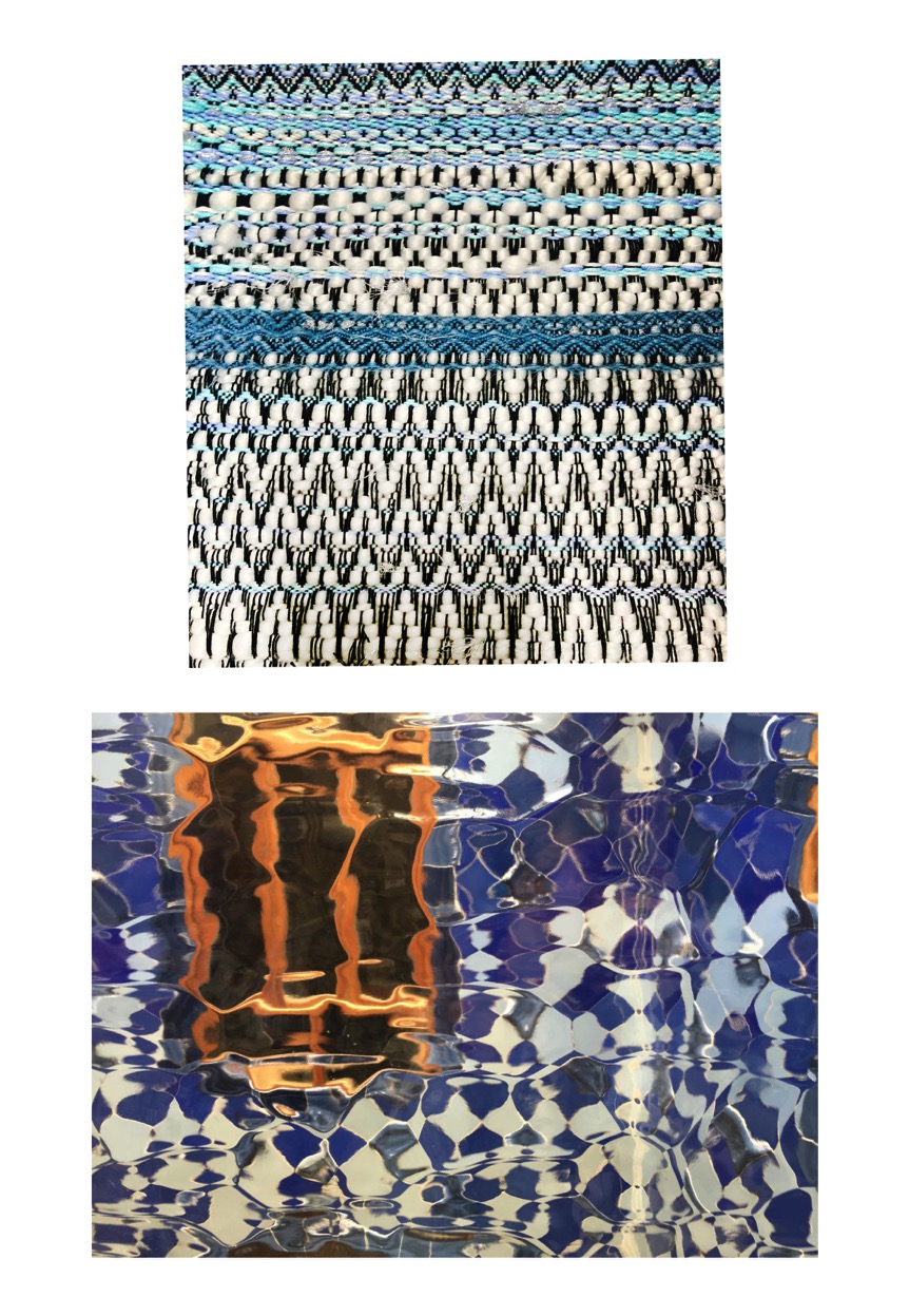 课程初期,Elizabeth让每一位同学准备八张自己拍摄的风景照片,通过筛选选取最合适的灵感照片。之后Elizabeth讲师引导每一位学生通过照片提取灵感元素融入到自己的设计中去,指导学生进一步一步了解面料的构成的同时还带来了国际前沿设计的全新理念,让每一位同学对织物设计的步骤有了一个初步的了解。