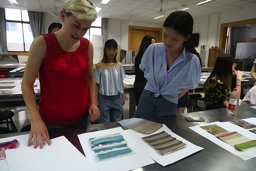 第四日,Elizabeth为大家带来自己在英国的作品并与大家对如何使自己的织物形成系列性进行了热烈的讨论。