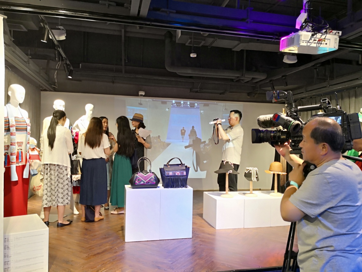 这次我校在上海大世界的展品共分两个部分,一部分是传承人+上海设计师品牌的合作商业实验作品,这种合作的作品不是简单的1+1=2,而是传统工艺的改良和技术创新基础上的商业探索,可喜的是学员马尾绣传承人韦秀竹、锡绣传承人王梅英和设计师Grace Chen合作设计制作的时装礼服,以及学员胡运和上海帽饰设计师沈婕合作设计制作的时装帽,和设计师颜淑仪合作设计制作的时装包都有了订单。另一部分的展品是刺绣传承人+JKF 捷克论坛 服装设计专业学生合作设计制作的服装,服装整体设计制作的过程是传承人了解现代生活需要、现代生产方式的学习思考过程,也是在校园学习的学生了解传统文化、学习传统技艺的课堂,所设计的服装作品不仅要在传统和时尚之间找到契合的载体,也是高校平台向世界传播中国文化的承载物。此次JKF 捷克论坛 研培成果的展出得到上海文广局和上海非遗处领导的支持和肯定,展览受到媒体的广泛关注和观众的喜爱。