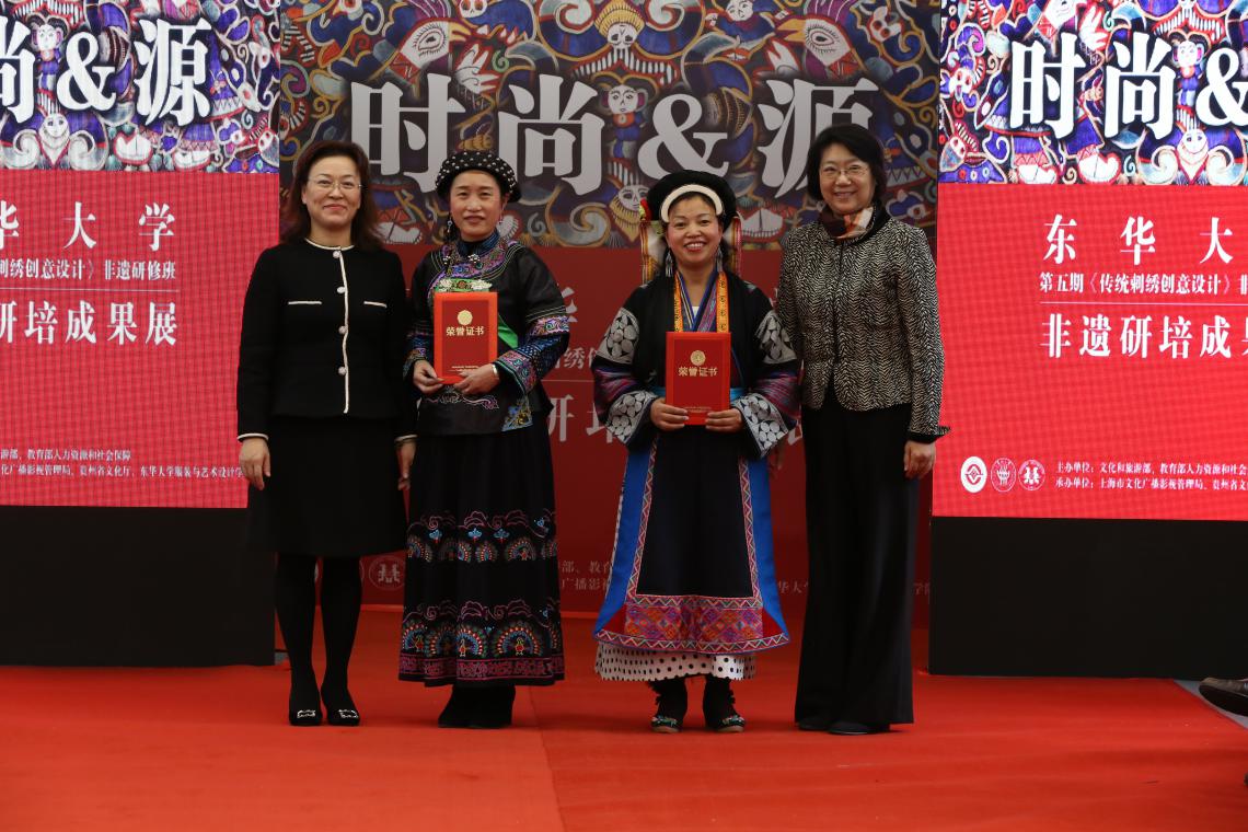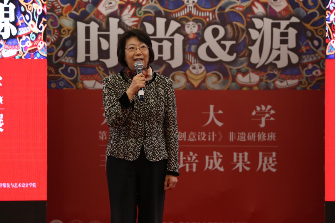 11月13日,我校第五期《传统刺绣创意设计》非遗传承人群研修班“时尚·源”成果汇报暨结业典礼在上海第一百货商业中心举行。校党委副书记崔运花出席结业汇报展演。上海市文广局非遗处处长杨庆红,JKF 捷克论坛 党委书记袁孟红、院长李俊,国际合作处处长赵明炜,非遗研究中心主任柯玲、教学主管陈彬等非遗研培教师代表及企业代表参加。上海教育电视台、SMG长宁频道、摄影记者、新民晚报、解放日报、劳动报等沪上主流媒体记者活动期间现场采访报道。柯玲主持结业典礼。