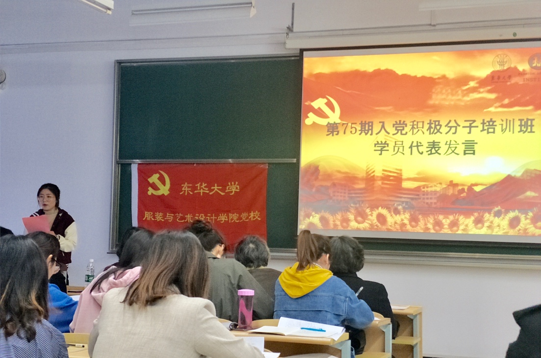 之后第74期入党积极分子培训班的优秀学员代表张柳越同学进行了发言,她与本期学员们分享了去年的培训学习经验,并提出了三点建议:一关注时政;二与党组织即时交流;三认真学习,提高综合素质。她提到入党不仅要有先进积极的思想,还要掌握党的知识、党的发展以及身为一名中国共产党党员应该具备的条件与素质。入党是一项严肃的、光荣的行动,希望大家可以通过认真的学习,掌握有关党的知识。