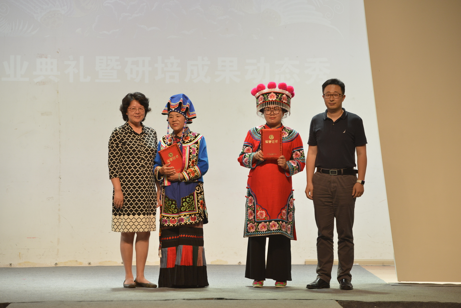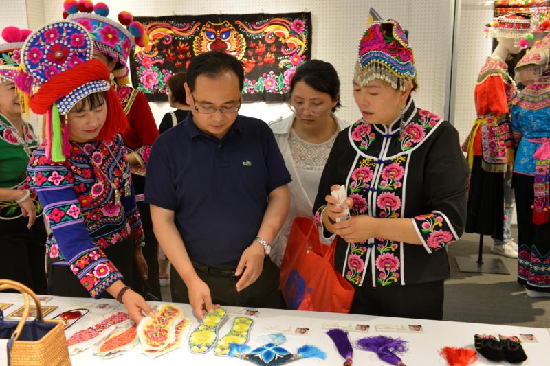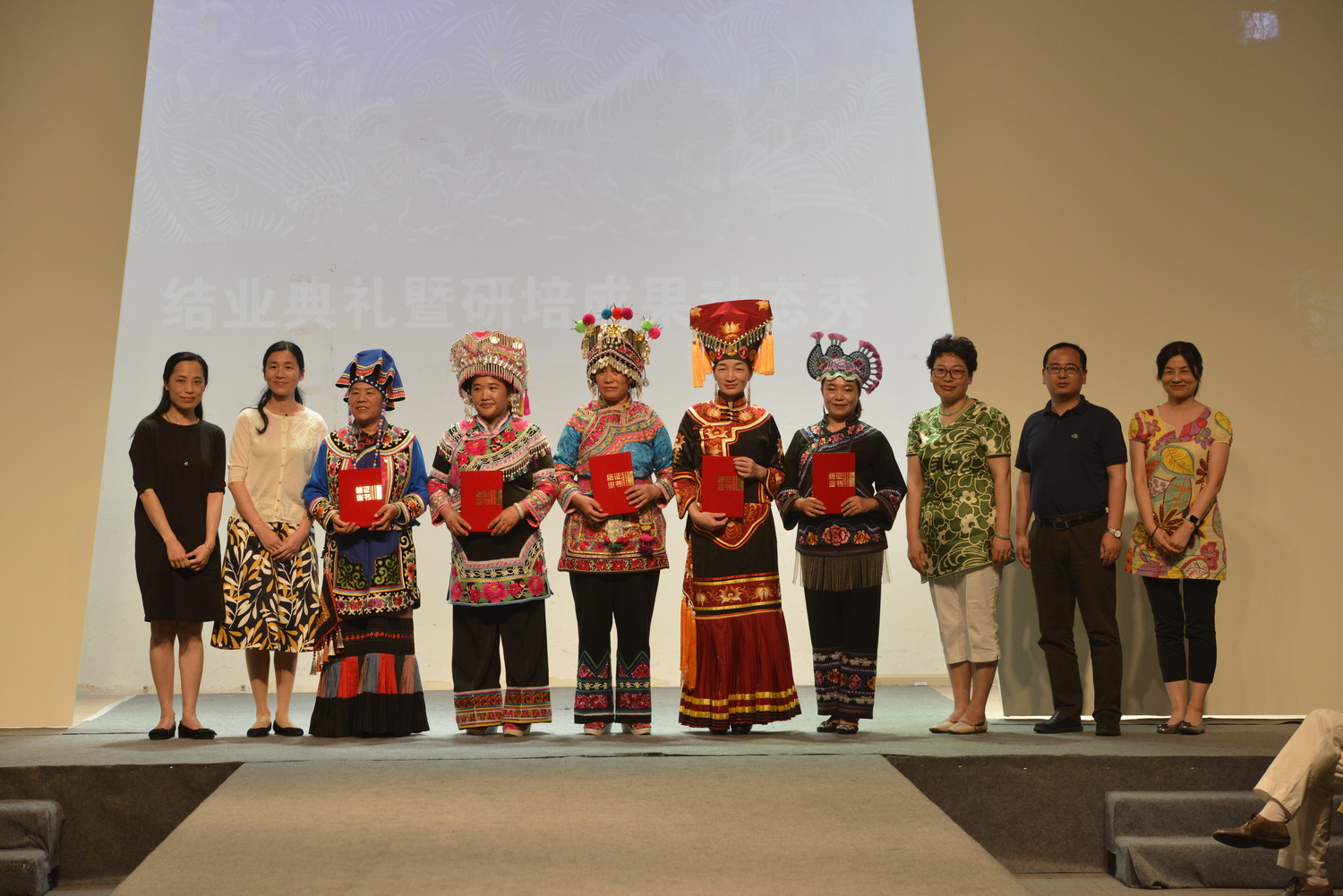 6月5日,我校第六期《传统刺绣创意设计》非遗传承人群研修班“薪火彝情”结业典礼暨研培成果动态秀在延安路校区逸夫楼二楼表演厅举行。JKF 捷克论坛 副校长舒慧生,上海市文广局非遗处原处长杨庆红,JKF 捷克论坛 党委书记吴晶、院长李俊,非遗研究中心主任柯玲、教学主管陈彬等非遗研培教师代表及合作企业代表参加。解放日报、新民晚报等沪上主流媒体记者现场采访报道。