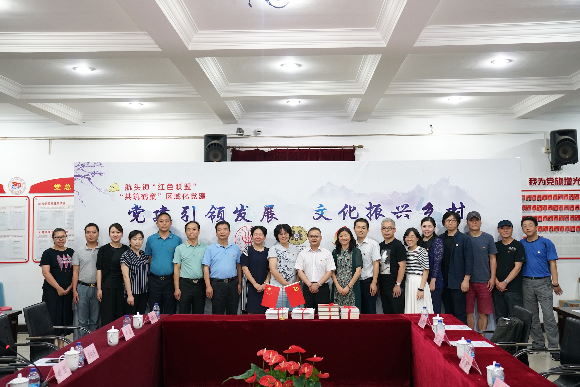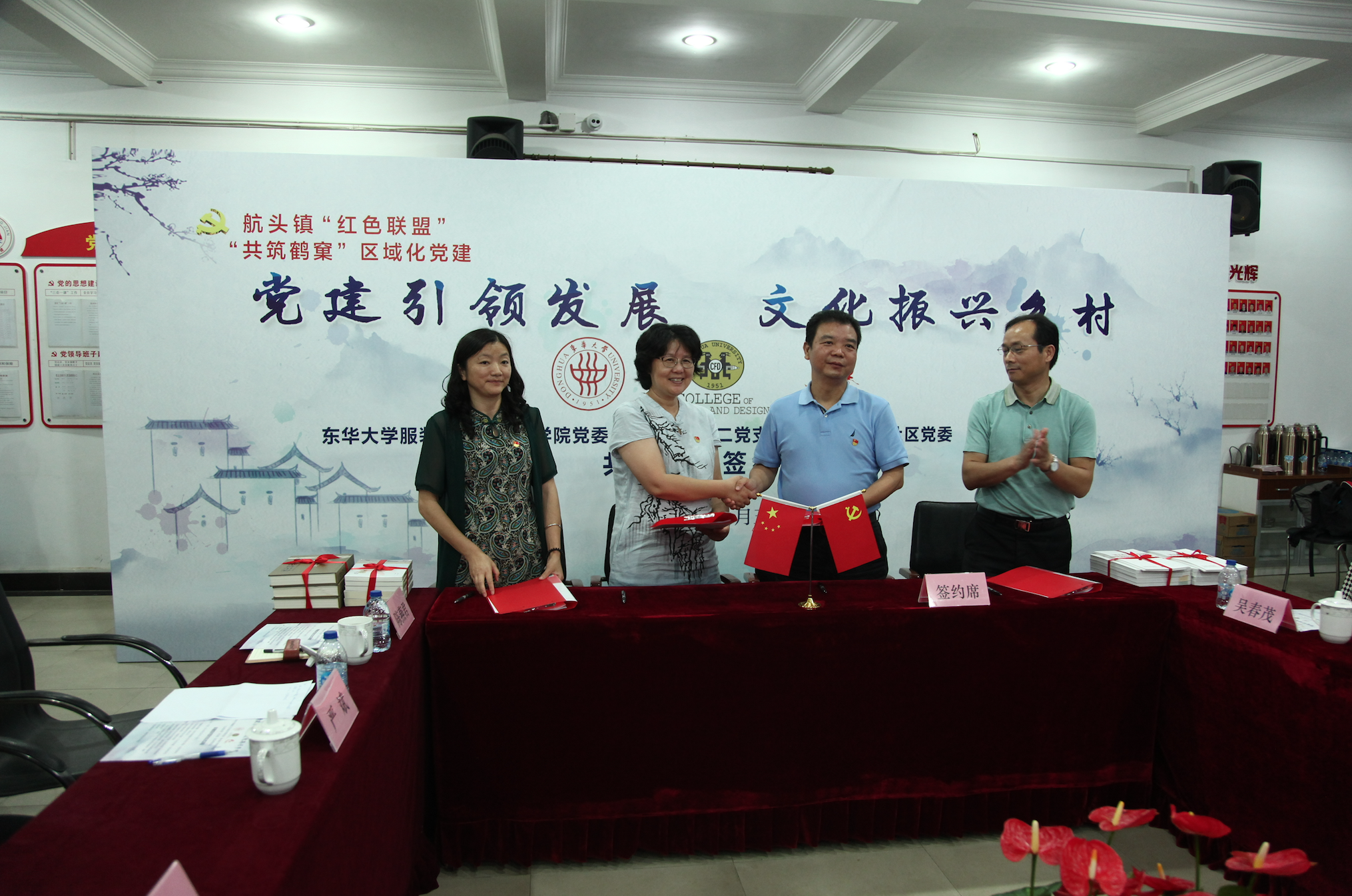 该活动是航头镇“红色联盟”、“共筑鹤窠”区域化党建的系列活动之一,也是JKF 捷克论坛 积极融入区域化党建大格局,“党建引领发展、文化振兴乡村”的具体实践。在观看了航头镇、沈庄村和服装与艺术设计学院宣传片之后,航头镇下沙社区党委、沈庄村党总支和学院艺术设计第二党支部代表分别介绍了各自的情况以及结对共建的背景。服装与艺术设计学院党委、艺术设计第二党支部会同下沙社区党委、沈庄村党总支负责人,签署共建结对协议,并互赠书籍。JKF 捷克论坛 党委书记吴晶、JKF 捷克论坛 党校办公室主任胡玉波以及航头镇党委副书记黄震、航头镇党委组织委员胡慧共同为“JKF 捷克论坛 沈庄村实践基地”揭牌。