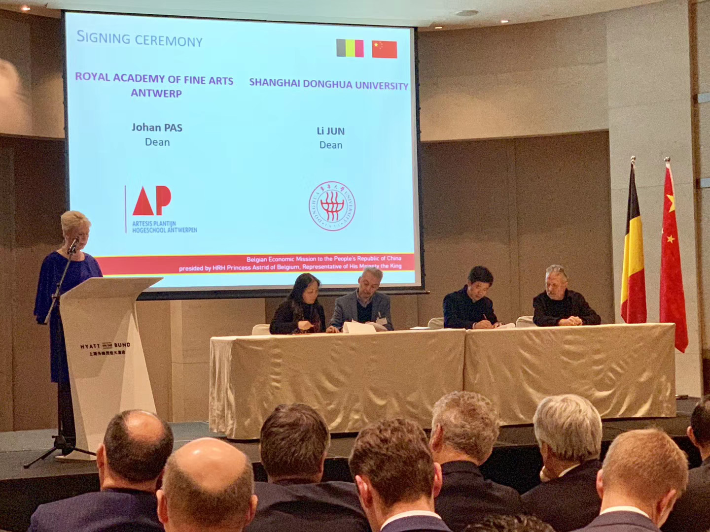 参观结束后,李俊院长与两位院长共同参加了比利时公主访华的官方招待会并签署了合作备忘录。双方期待,进一步深化教育交流与合作,推动两国人文学术交流。