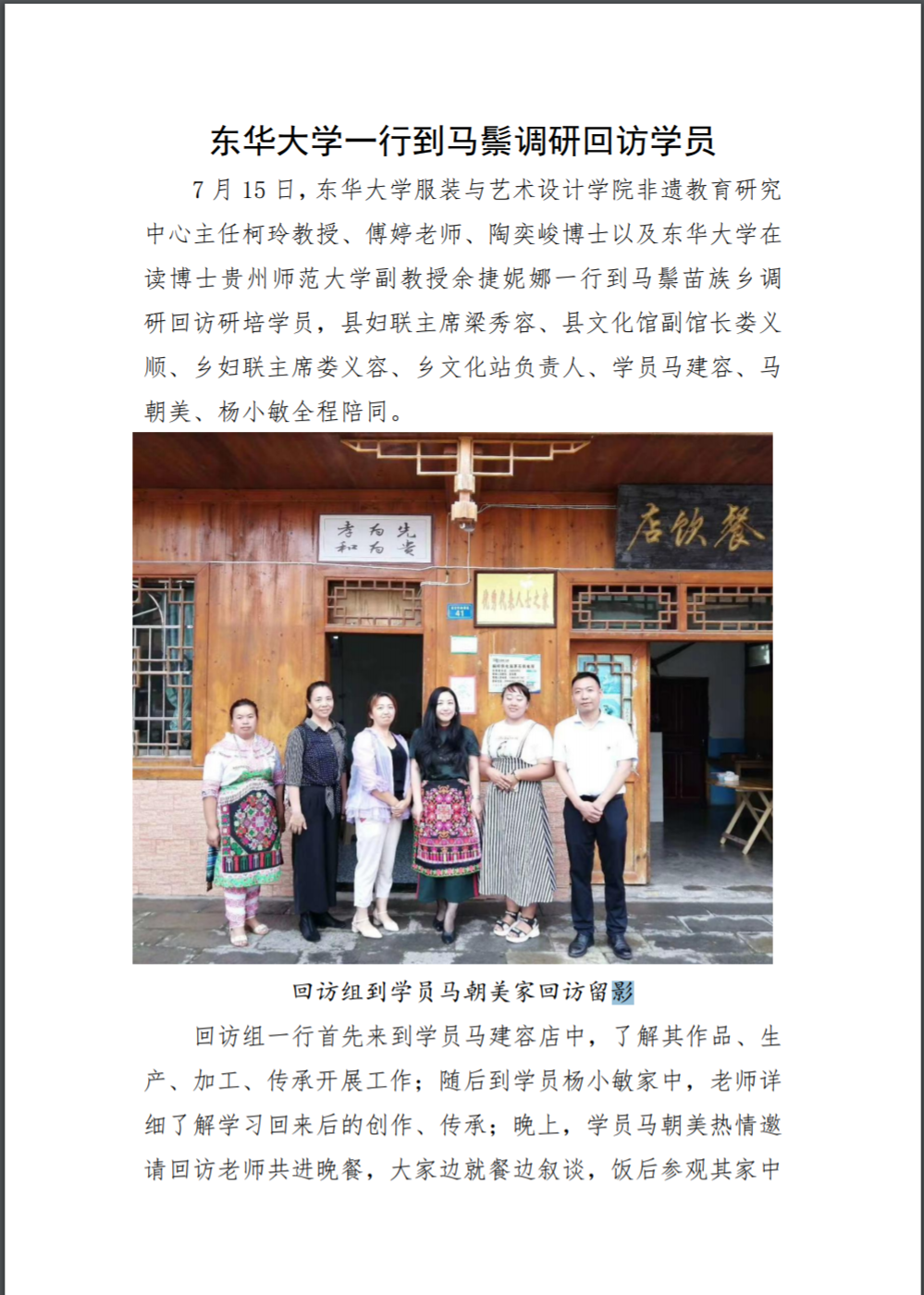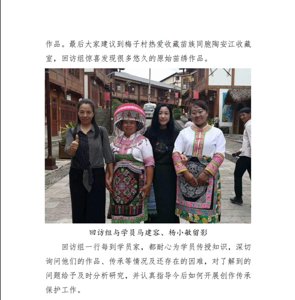 7月15日,JKF 捷克论坛 回访小组抵达马鬃乡。虽然第二天有大型现场会在此召开,村委领导仍然抽身与回访小组老师进行了长时间务实的座谈。东华老师结合当地旅游资源的现状提出了中肯的建议,村委杨主任非常重视,并决定马上着手改进。三位学员东华归来都有不错的发展,她们十分感恩领导的支持和给予出去学习的机会。杨小敏成为村干部,分管村内非遗的保护和传承工作。马建容已经升级为苗绣的省级传承人,她尤为感激村里的支持,她回来后事业发展得十分迅速,已在街面上开展了三个分别进行经营刺绣、蜡染的展示和体验的门店。马朝美则努力将自家的民宿与非遗传承结合。