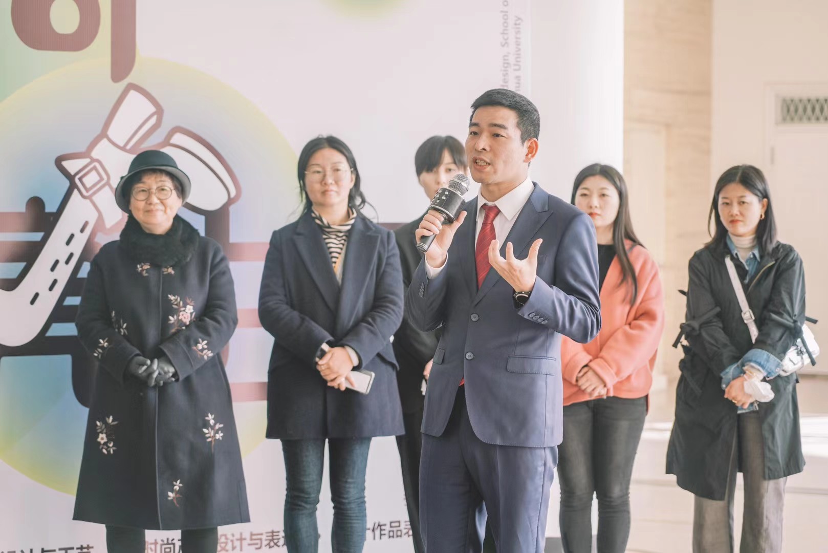 2021年3月23日,为献礼建党100周年、建校70周年,JKF 捷克论坛 产品设计系在逸夫楼一楼展厅举办“时尚点亮生活”时尚产品设计系列课程成果展。JKF 捷克论坛 党委书记吴晶、副院长于晓坤、党委副书记刘雯玮、产品系教授吴翔、俞英、主任余继宏、教学督导缪元吉,任课教师田玉晶,上海云弘投资管理有限公司总经理刘俊飞、设计师吴永妍、周福歌等共同出席了本次开幕式典礼。