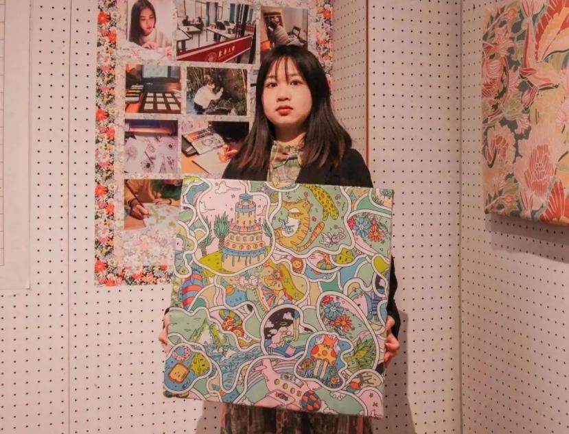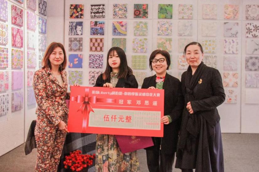在16名参赛者的入围名单公布后,前八名在利伯缇上海展厅参加角逐冠军的面试,同学们通过视频通话中向评委进一步解释他们的作品和创作思路。紧张的面试以后,最终服装设计系纺织品艺术设计专业1701的邓思遥同学赢得了“谁是你的缪斯?”印花设计大赛的冠军。