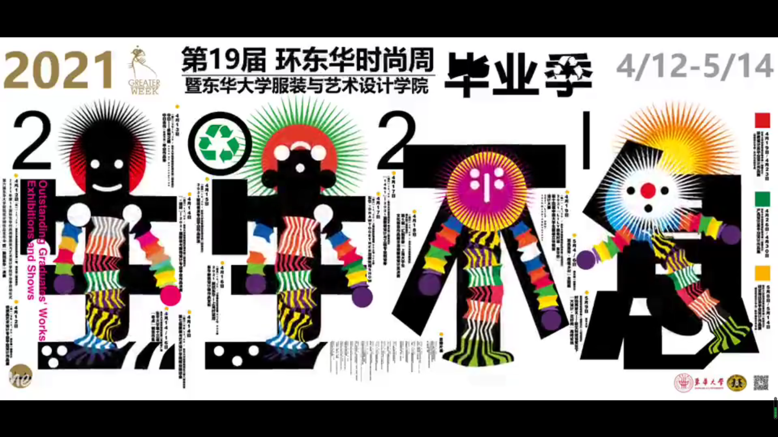 通过“环东华时尚周”,向上海输出“东华设计”力量。“环东华时尚周”自2002年首次举办以来,经历了近20年发展历程,在后疫情、双循环新发展格局下,时尚周持之以恒地举办。2021年4-5月,为期月余的第19届“环东华时尚周”顺利举办。本届时尚周包含时尚设计动态和静态发布、论坛讲座、创意集市、专业评选会、就业推进会等数十场活动,展现了东华时尚设计的教育与研究成果。一系列具有“东华特色”的时尚新技术、时尚新模式的智慧创意成果,推进了探索“创新、开放、协同、绿色、关怀”的设计学科发展新路,为上海增强城市创新活力、塑造城市美誉品牌贡献东华力量。