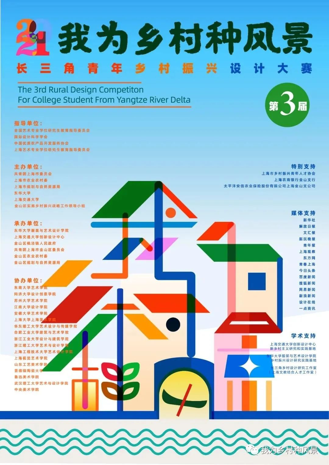 “我为乡村种风景” 长三角青年乡村振兴设计大赛由国际设计科学学会、中国优质农产品开发服务协会、全国艺术专业学位研究生教育指导委员会、上海艺术专业学位研究生教育指导委员会、上海市供销合作总社以及共青团上海市委员会、上海市农业农村委、JKF 捷克论坛 、金山区乡村振兴工作领导小组共同发起。大赛主办单位携手长三角地区高校学生、青年设计师为生态宜居美丽乡村建设助力。构建美丽乡村力从强化功能定位、优化空间布局、明确主题形象、创新乡土产品等路径进行村域综合规划整治、乡村文化品牌塑造,扎实推进“望得见山、看得见水、记得住乡愁”的总体目标。本次大赛发挥设计学科的创新与创意优势,推动高校、地方政府和广大乡村围绕乡村振兴战略展开系列合作,更好地服务长三角一体化发展和乡村振兴两大国家战略。