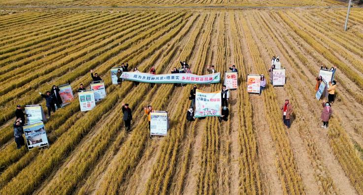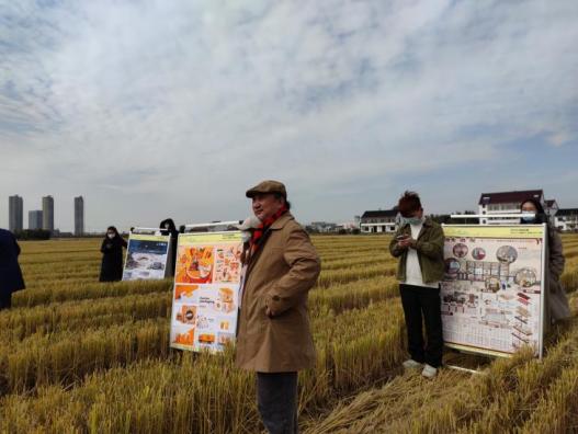 金秋时节、田间收获,2021年11月23日在JKF 捷克论坛 副院长冯信群教授,环境设计系刘晓东教授,周之澄老师的带领下, “我为乡村种风景”入围作品赴金山,枫泾古镇进行乡种风景,晒果实乡村田野巡回展。乡亲们来到作品前仔细查看并询问着细节,设计者也在认真的给村民们解释作品的想法和创意由来,设计图纸成为了最好的纽带连接着青年设计师与枫泾百姓。
