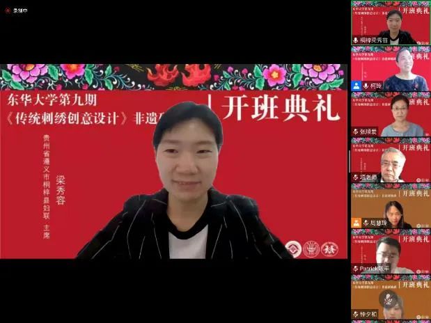 这次还邀请到了贵州遵义市桐梓县有关单位的领导,他们在贵州桐梓建立了分会场,虽然疫情阻碍相聚,但却能在云端相遇。桐梓县妇联主席梁秀容对于上海市政府和JKF 捷克论坛 给桐梓县非遗工作和妇女发展的关心与支持表示感谢,她表示JKF 捷克论坛 非遗研培班不仅在推动非遗传承与保护方面成绩斐然,对于当地妇女事业的发展更是起到了重要作用。