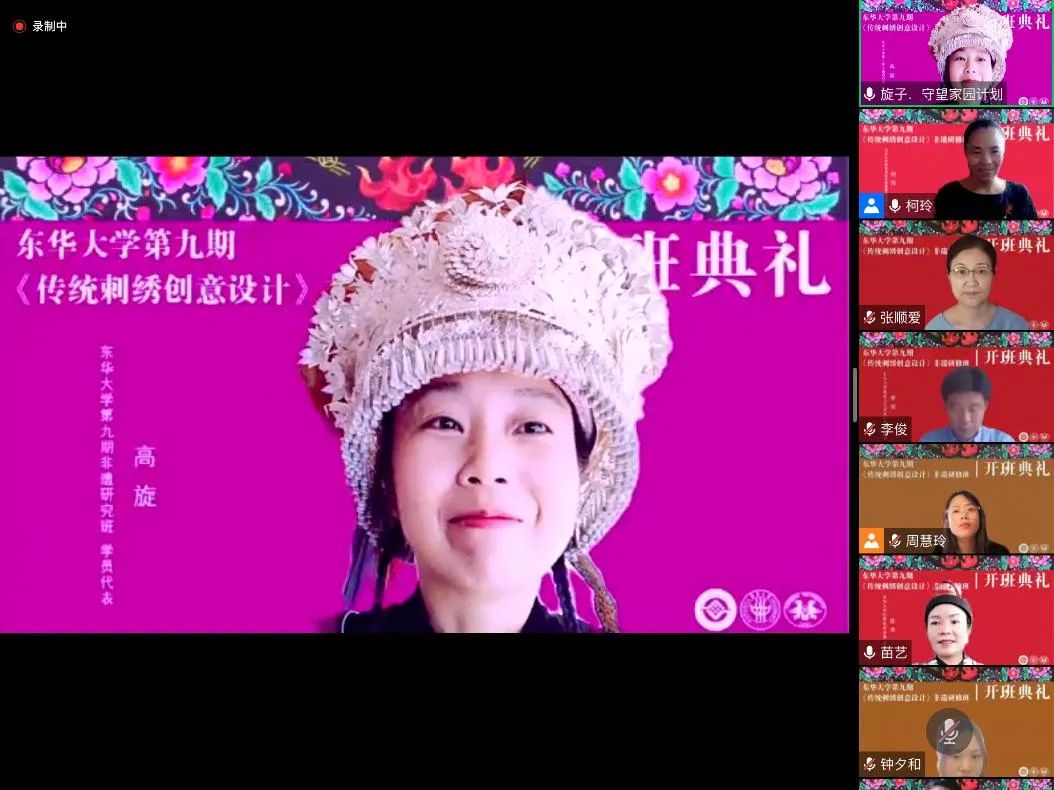 东华非遗研培走到第九期,专一、专著、专业的东华特色已经形成。采用线上线下结合的授课方式是一次全新的尝试,或许也是一个全新的开始。成长与发展之路上,必然面临挑战,但我们坚信若是手挽手、肩并肩一起前行,大家共同浇灌的非遗之花定会越开越枝繁叶茂。