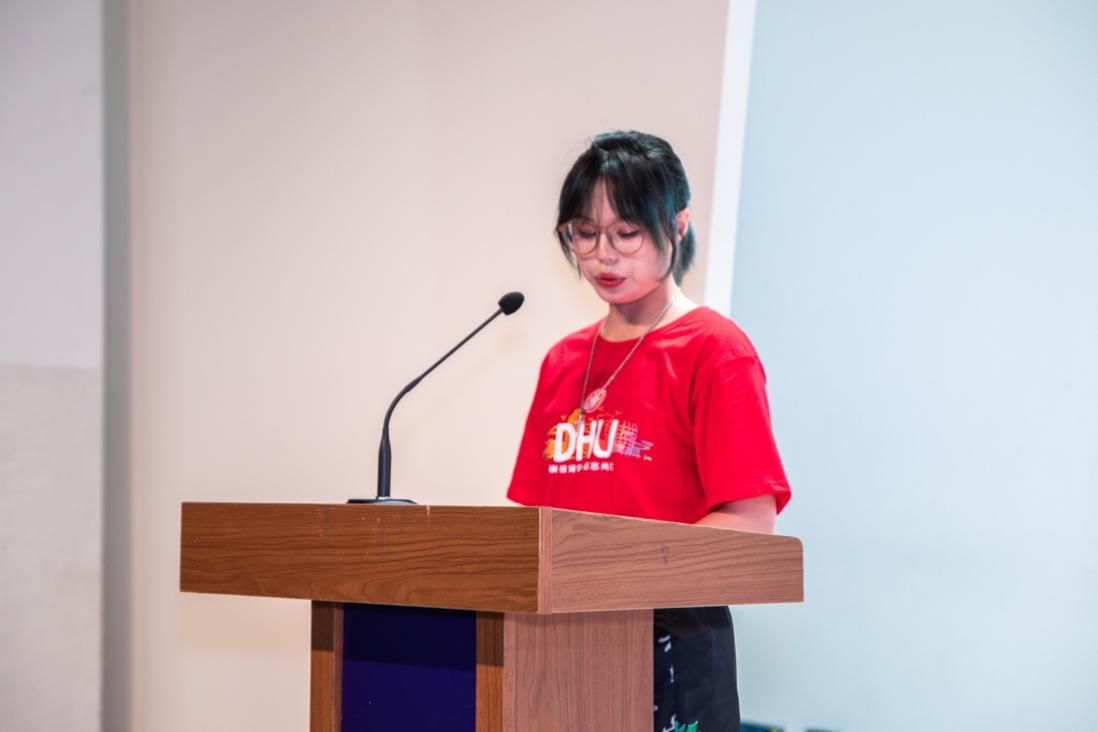紧接着2022级新生代表丁文雯进行发言。丁文雯同学在讲话中回顾了高中时期刻苦学习的历程,以及对未来大学生活的期许,追逐梦想的旅程已开启,号召新生们一起,站上新起点、迈向新征程,共同绘制梦想的蓝图。