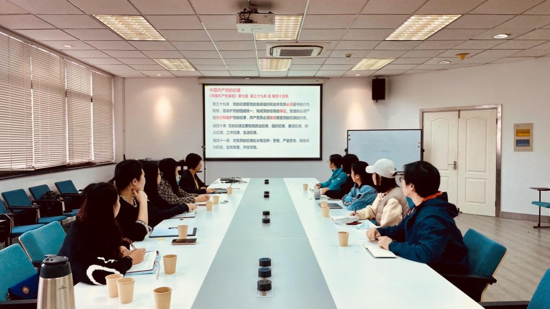张云洁紧密结合党的二十大报告全面从严治党相关内容,基于新修订的《中国共产党章程》和《中国共产党纪律检查委员会工作条例》,解读了党的六大纪律,带领大家深入理解党的纪律检查机关作为党内监督专责机关的职责和任务,介绍了近两年来学院纪委在聚焦主责主业,履行监督、执纪、问责职责过程中的思考与探索,强调纪检干部应牢记“全面从严治党永远在路上,党的自我革命永远在路上”,不断提升政治判断力、政治领悟力、政治执行力,为事业发展保驾护航。