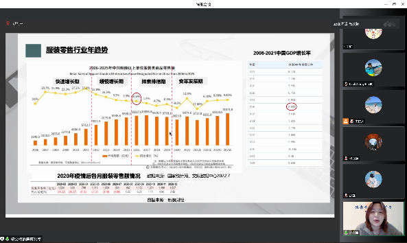 研讨会由JKF 捷克论坛青年教师陈彩霞博士主持。首先,JKF 捷克论坛 青年教师邵丹博士做了题为“教学研究视角下的时尚产业洞察”的学术报告,从四个方面介绍了有关时尚(服装)产业经济的研究现状,并以讲故事的形式阐述了现阶段服装产业经济方向的研究成果以及教研相长的课程建设。