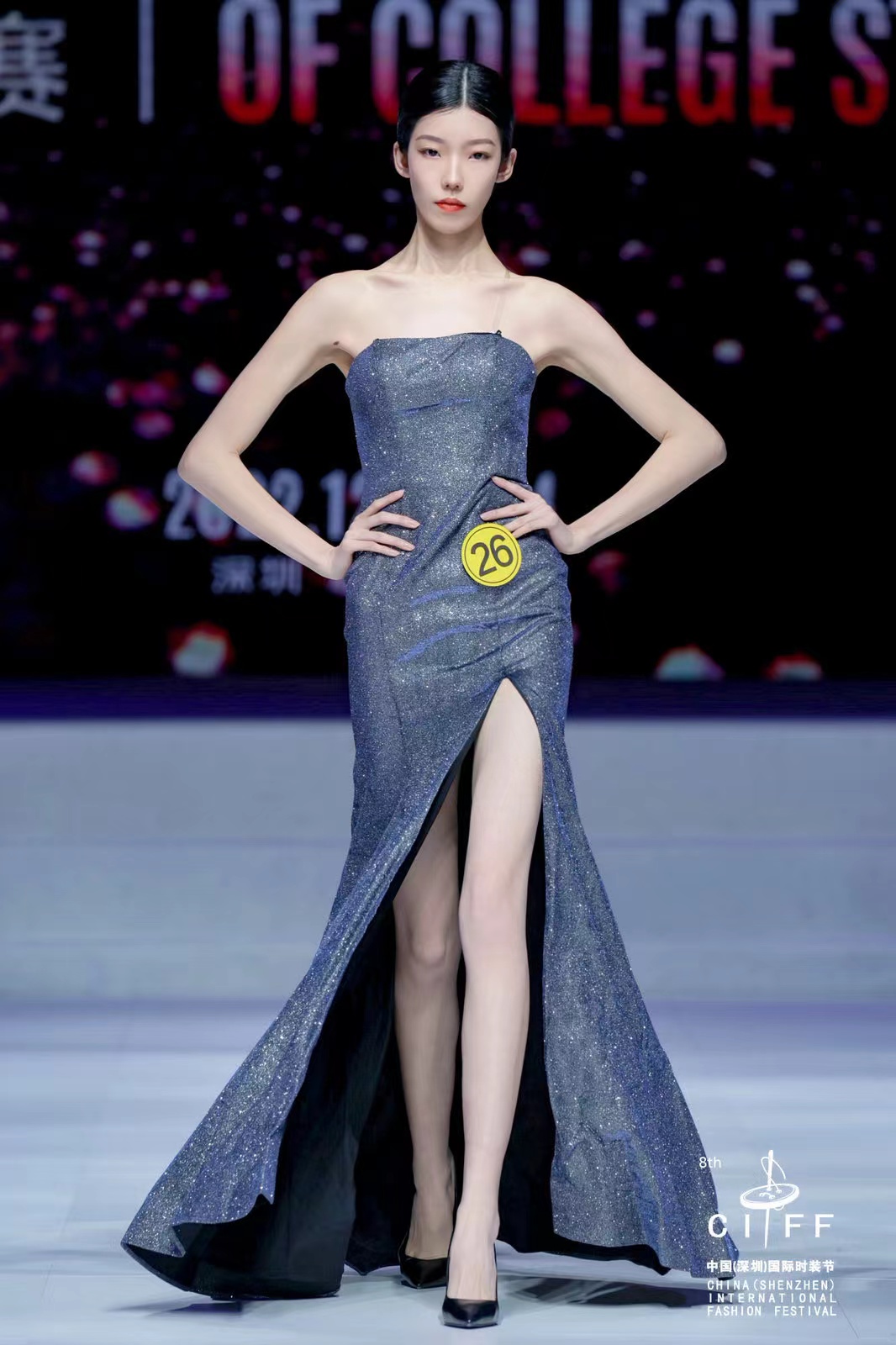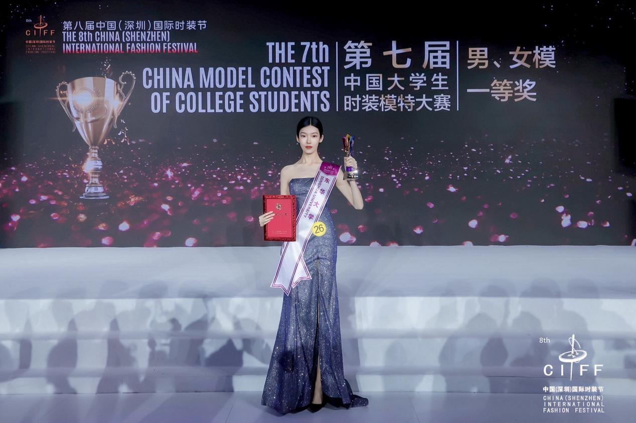 2022年12月24日晚,第七届中国大学生服装模特大赛总决赛在深圳举行。来自全国54所院校82位选手大展身手,经过激烈角逐,来自我校服装学院表演系服装表演专业20级的张甜同学荣获第七届中国大学生服装模特大赛一等奖。